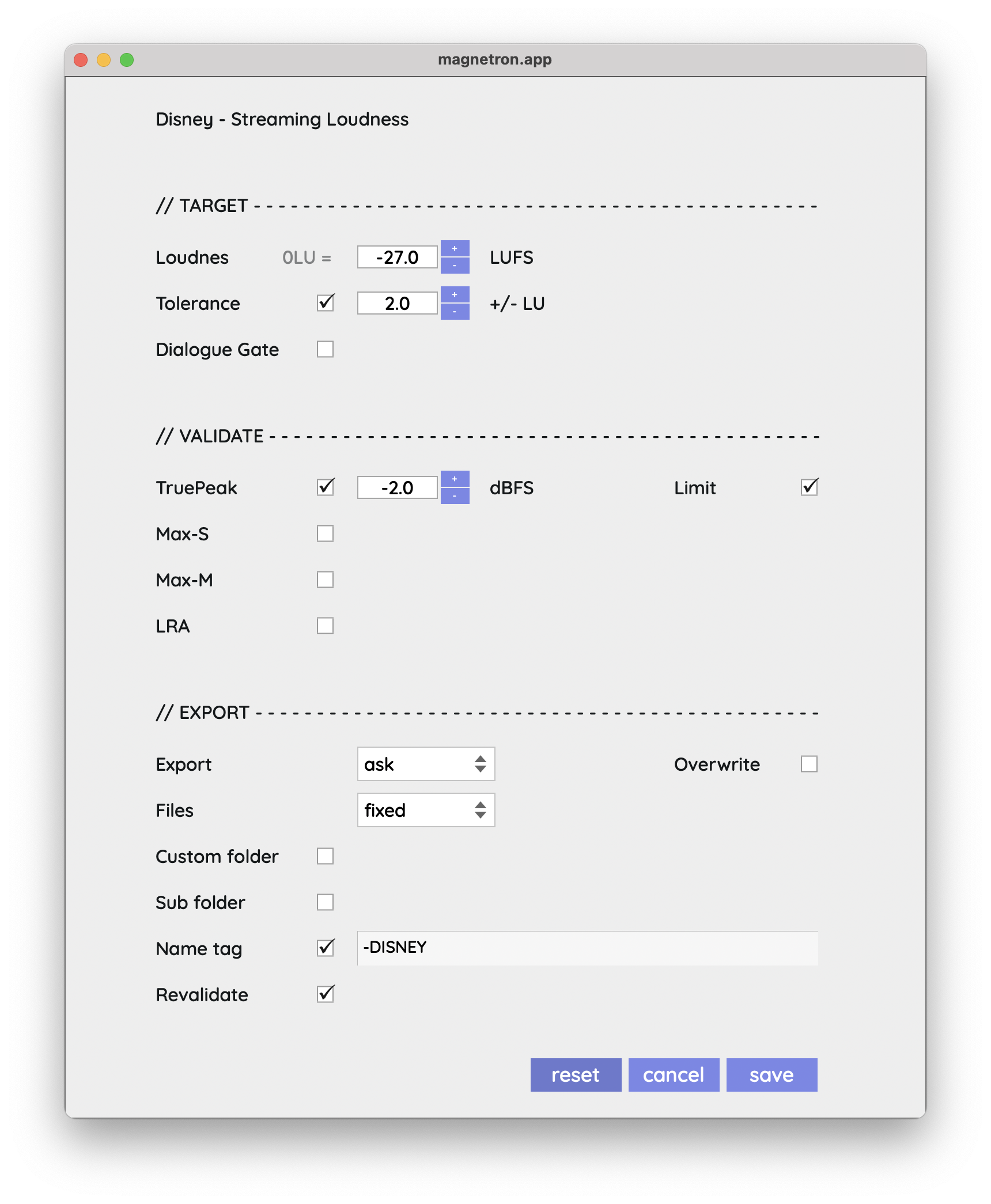 Validate or fix a file to match the online streaming loudness standard used by Disney Home Entertainment Online Streaming